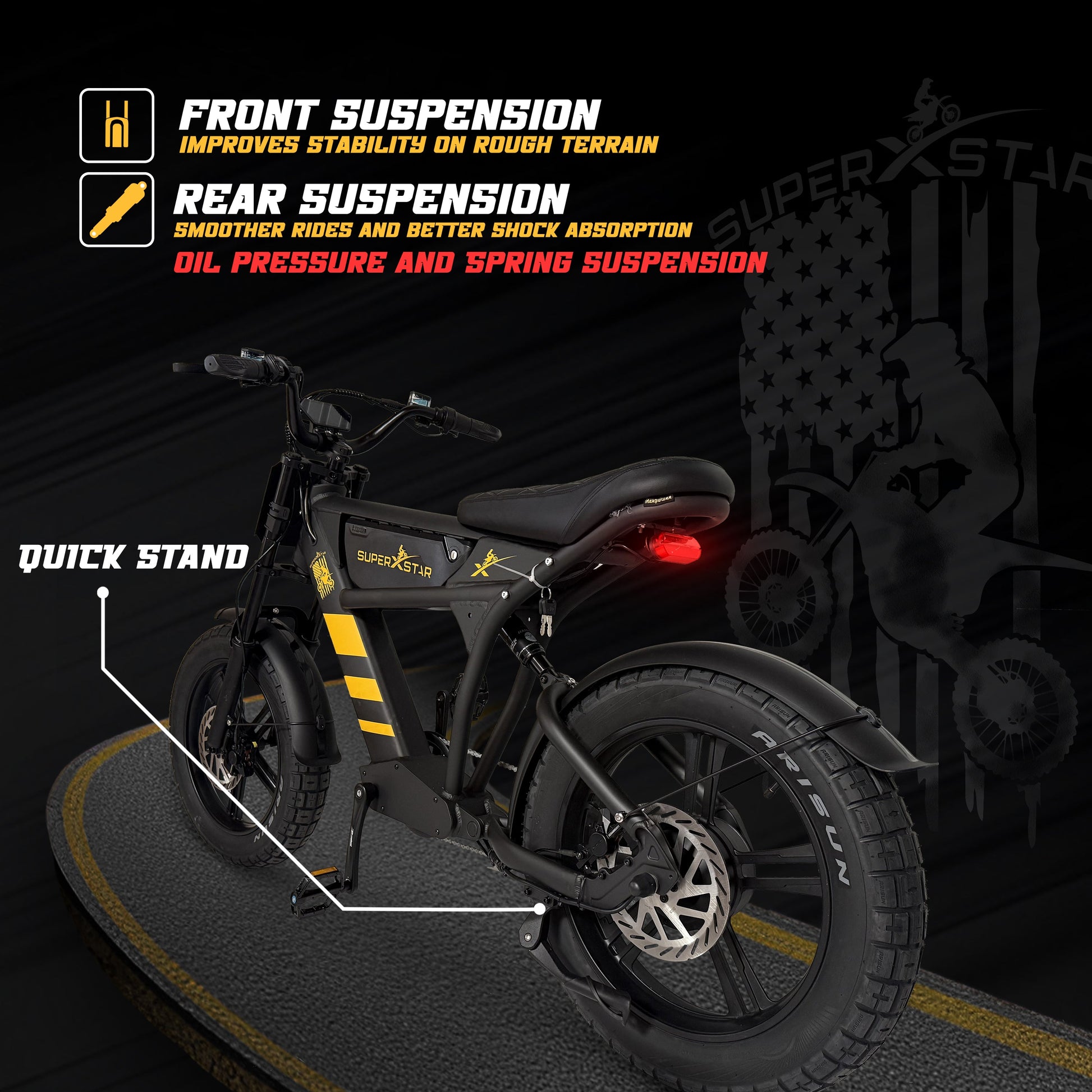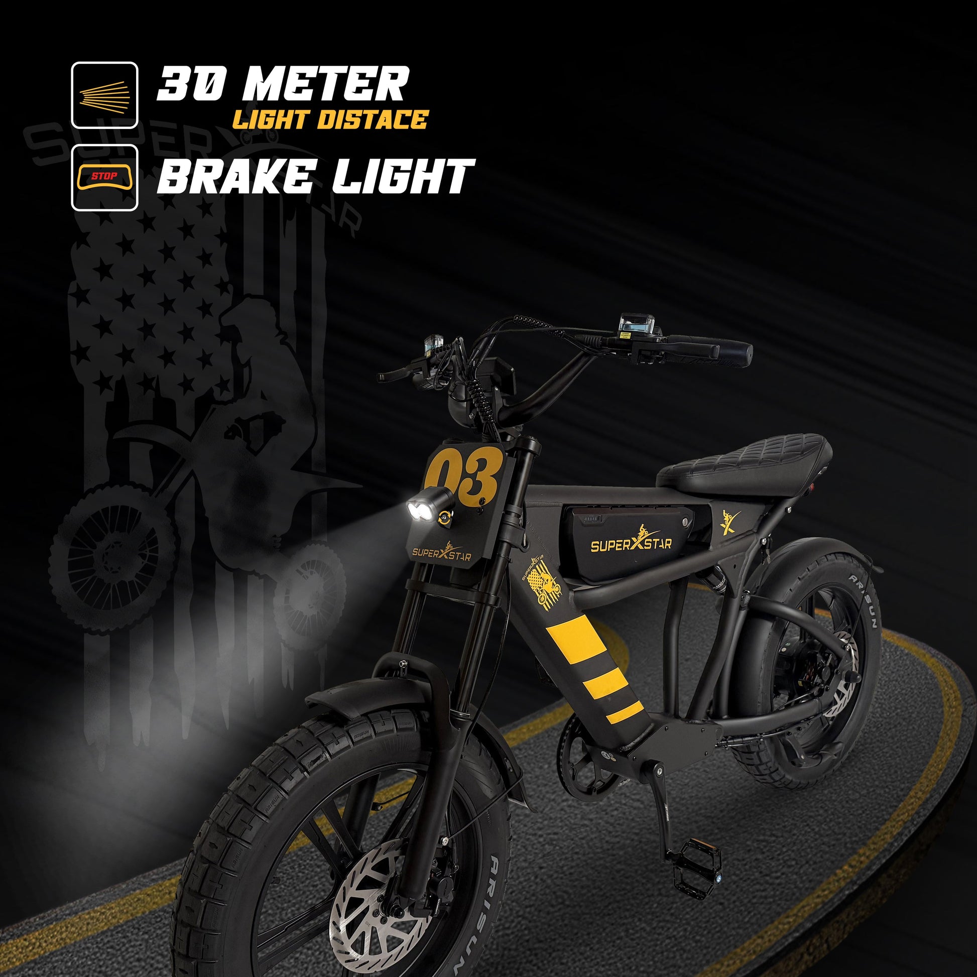 The Striker 03 is a high-performance 750W electric fat tire bike built for street speed, urban commuting, and weekend rides. With its aggressive design, removable lithium battery, and dual disc brakes, this eBike delivers reliable power and control for every type of rider.