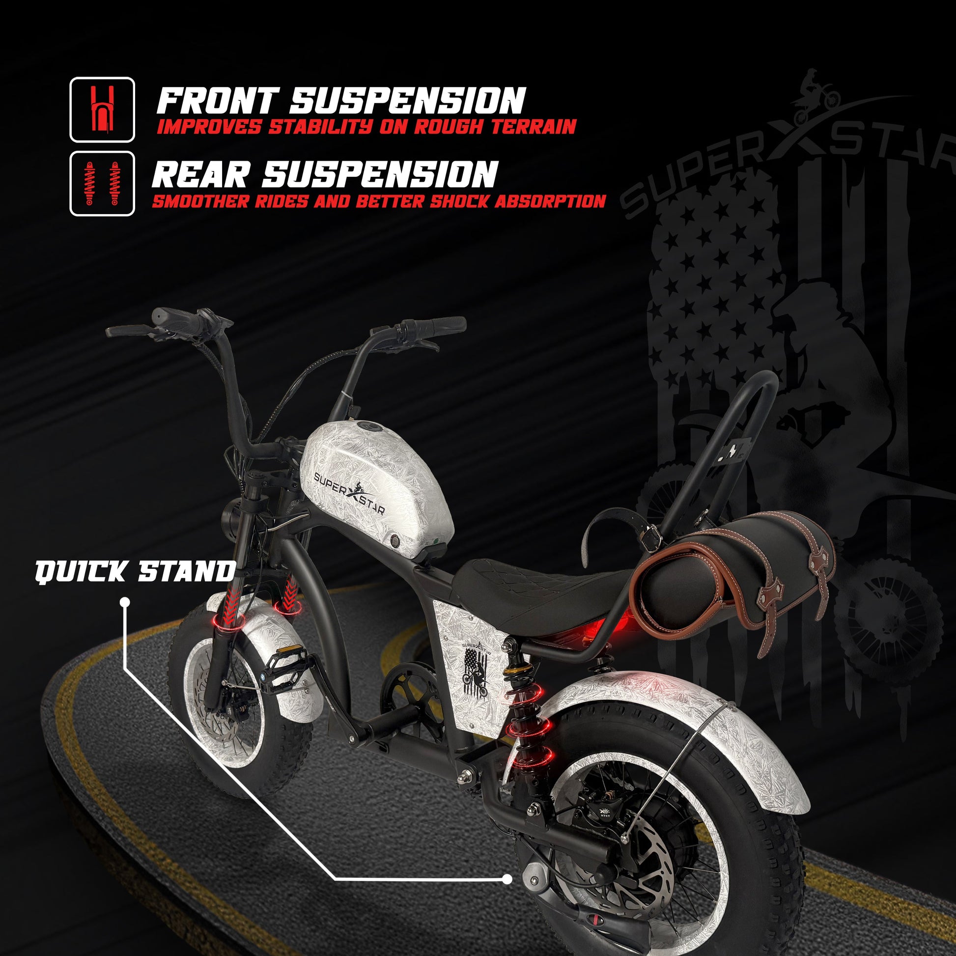 – Front and rear shock suspension