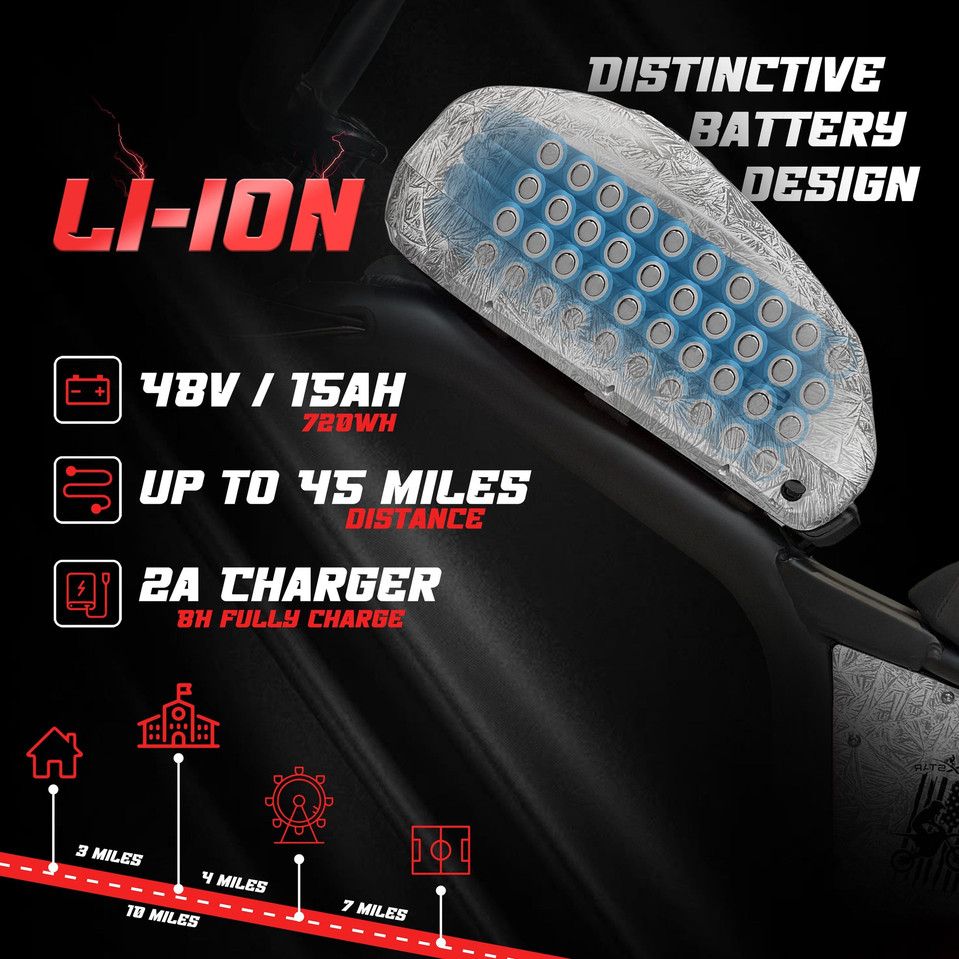– Up to 55 miles per charge